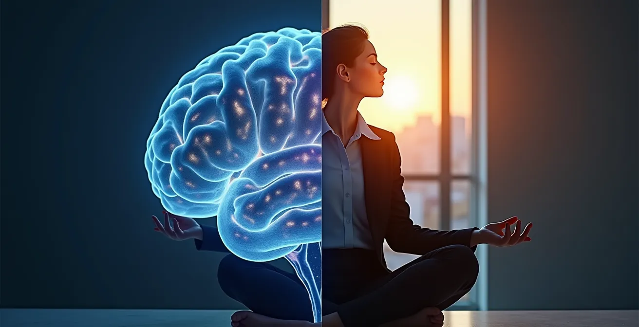 Meditation isn’t about emptying your mind; it’s a systematic training protocol that physically rewires your brain’s hardware for better focus and less stress.